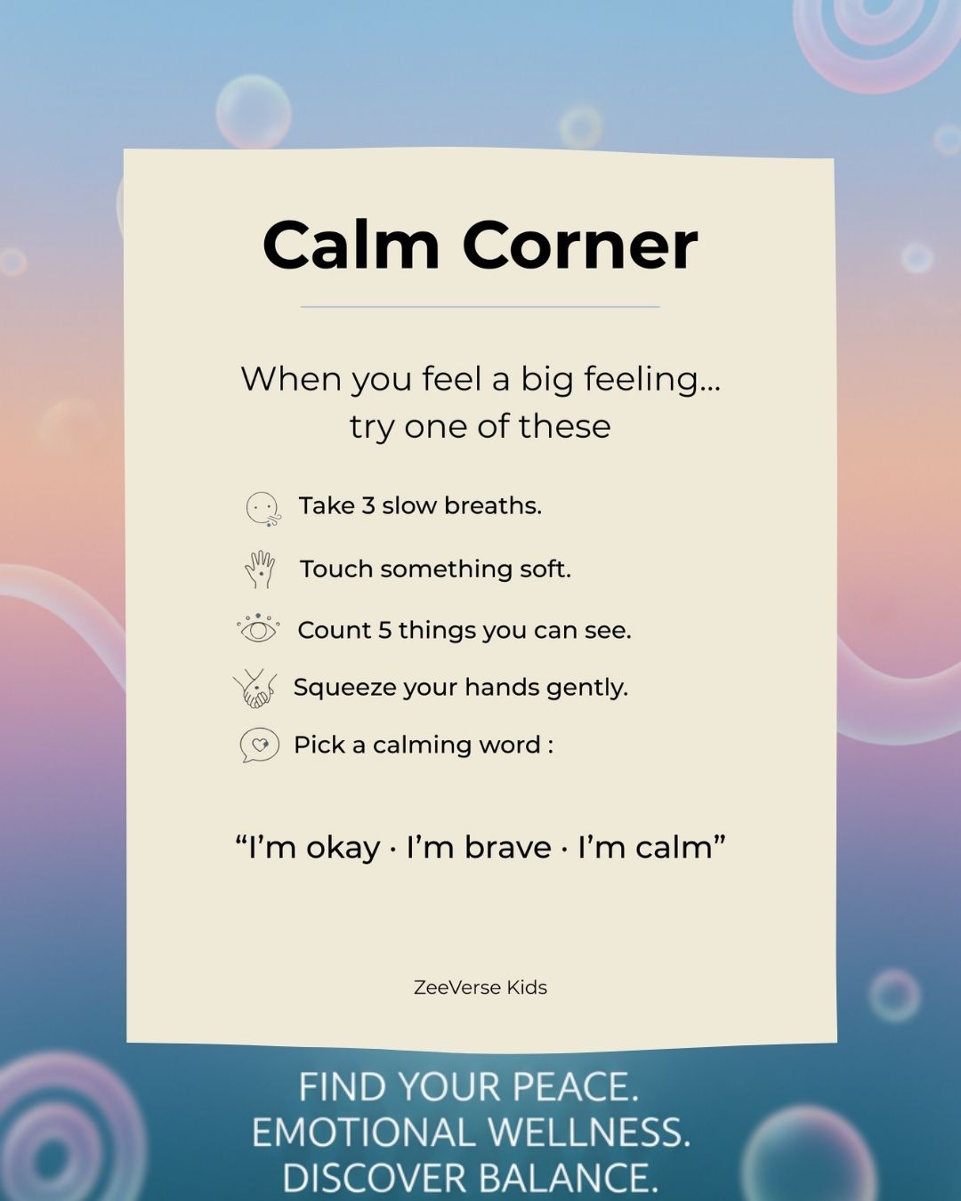 Help your little one calm their big feelings with this gentle Kids Calm Corner Card — a minimal, soothing visual tool designed for toddlers and preschoolers.